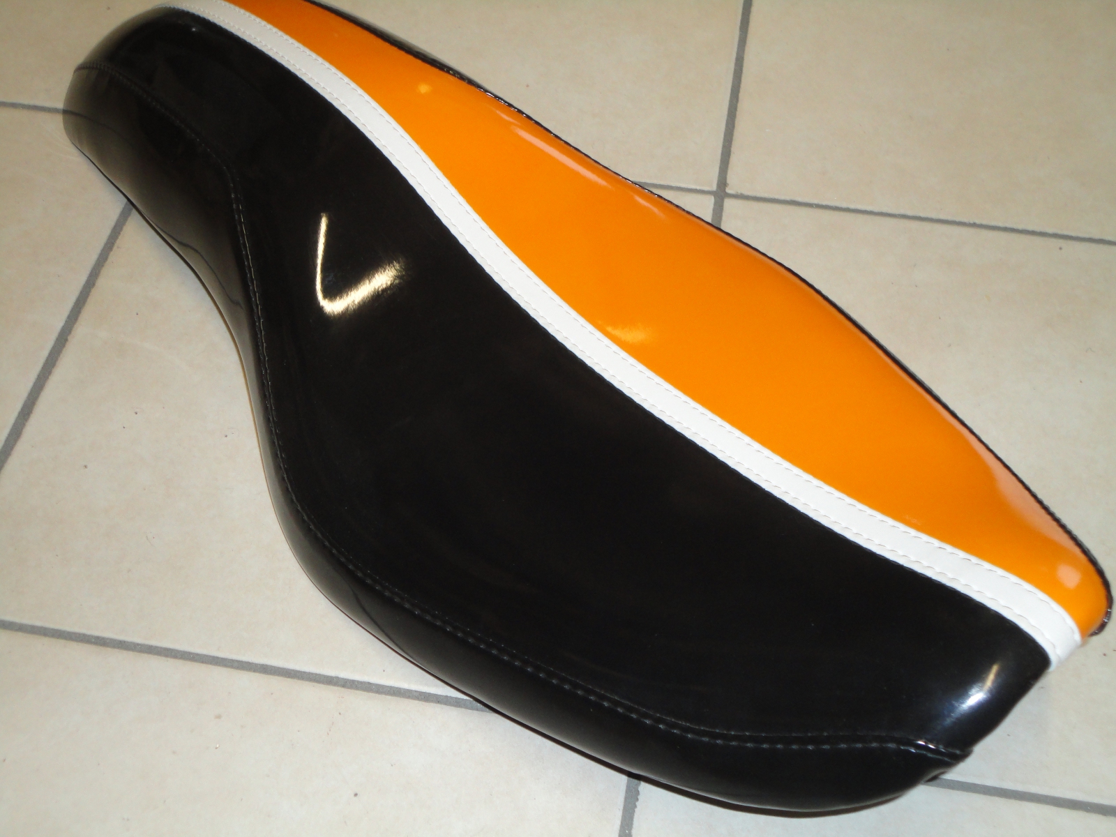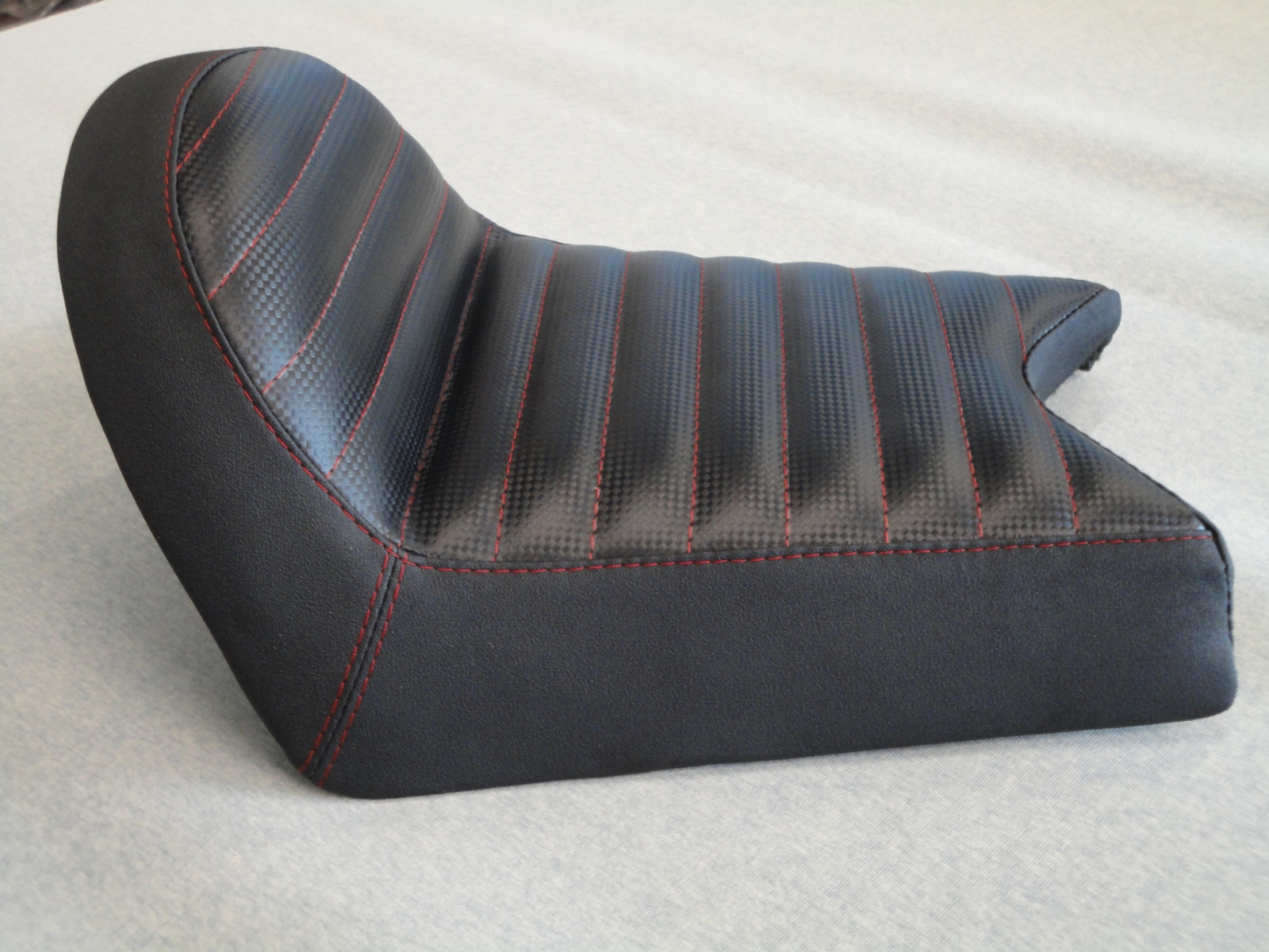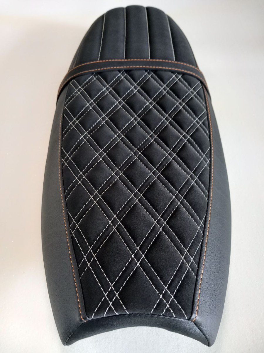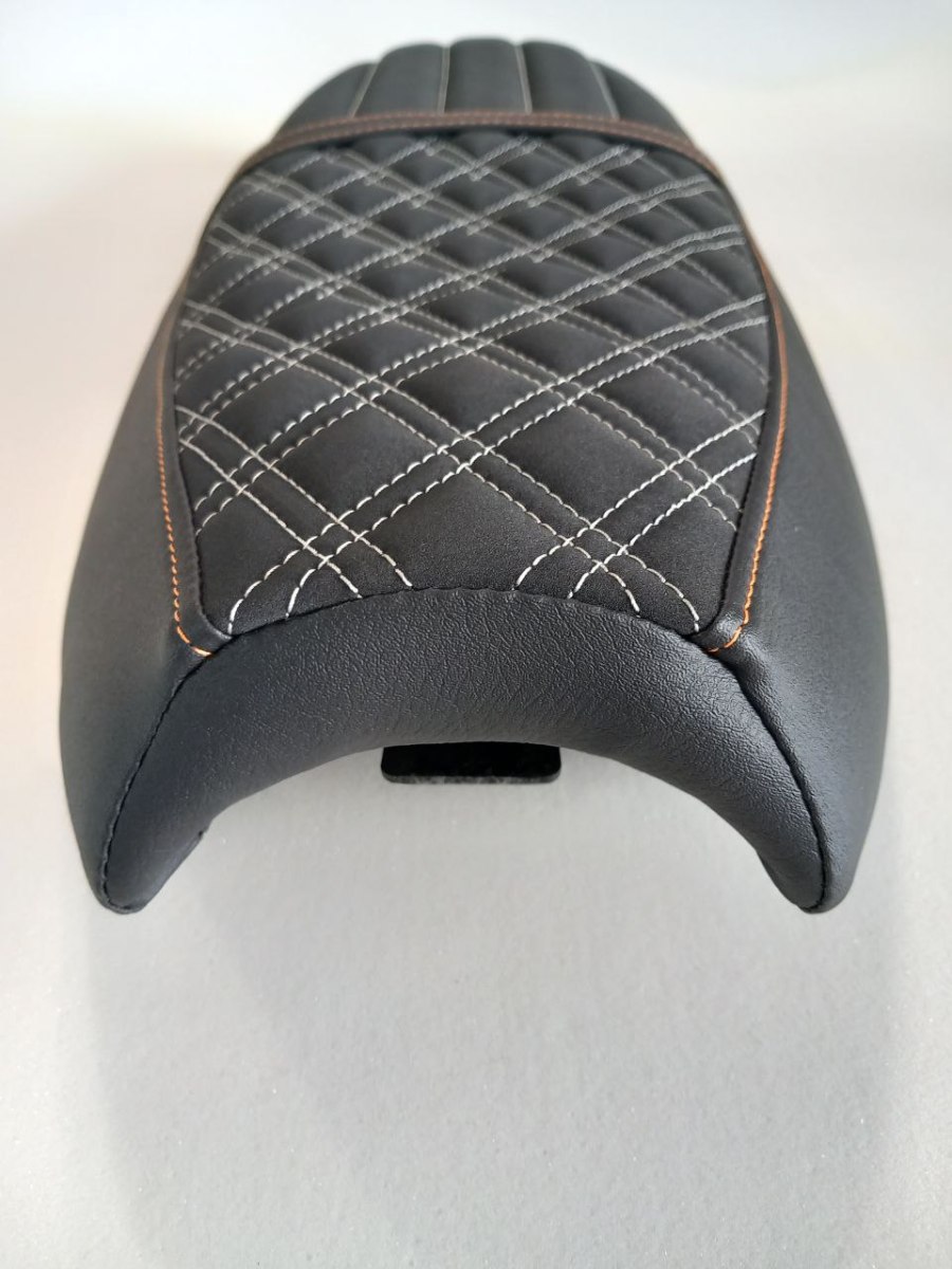Disegno come da sella originale, eseguita leggera modifica per aumentare il confort, rifacimento rivestimento in ecopelle antiscivolo ” pallini”