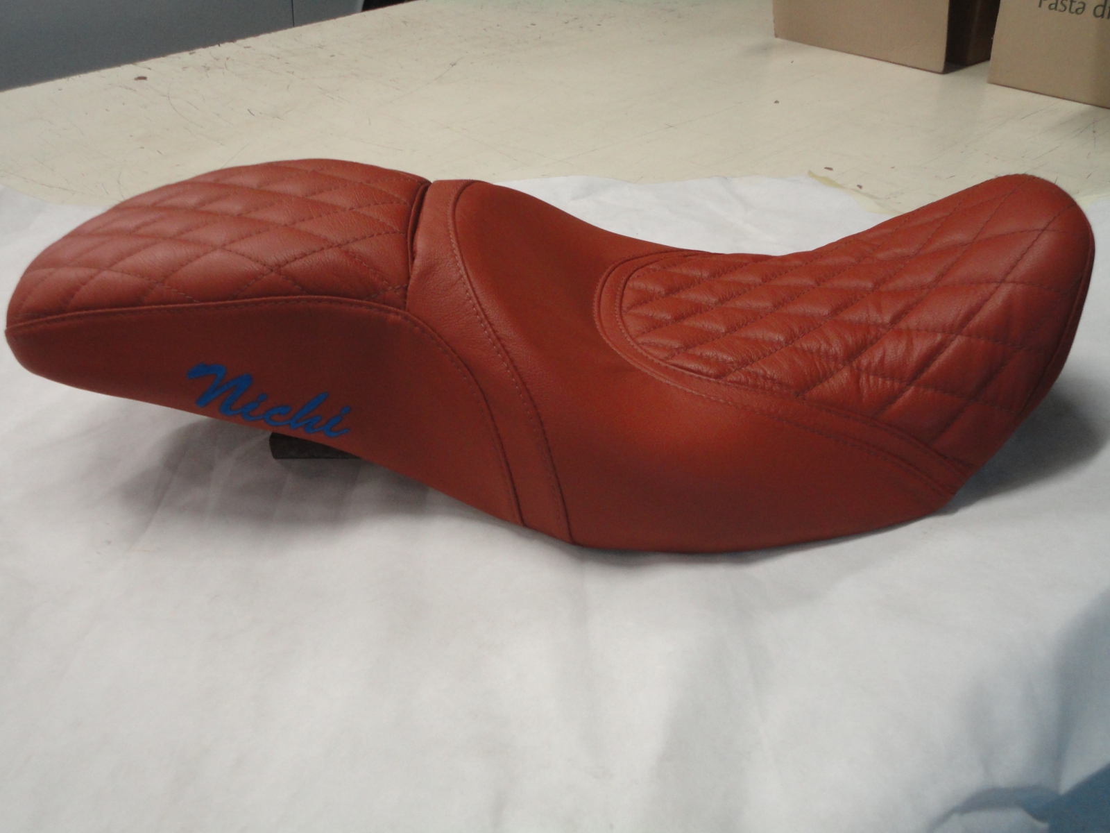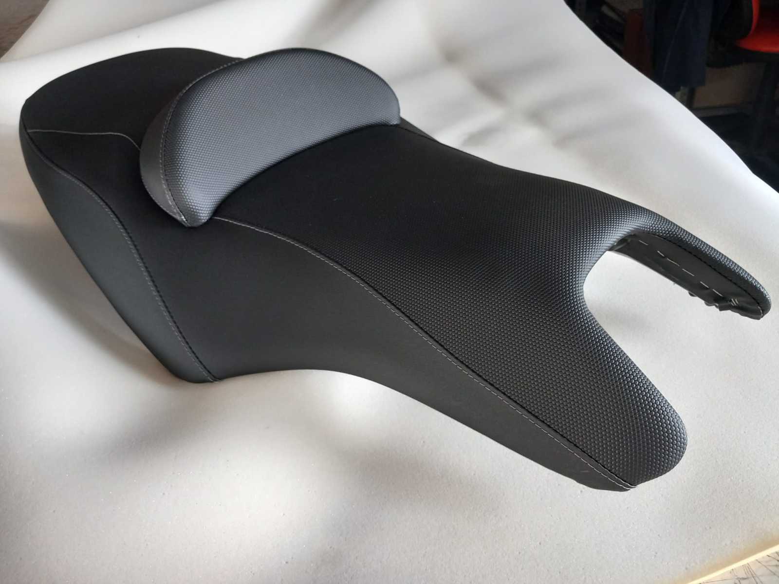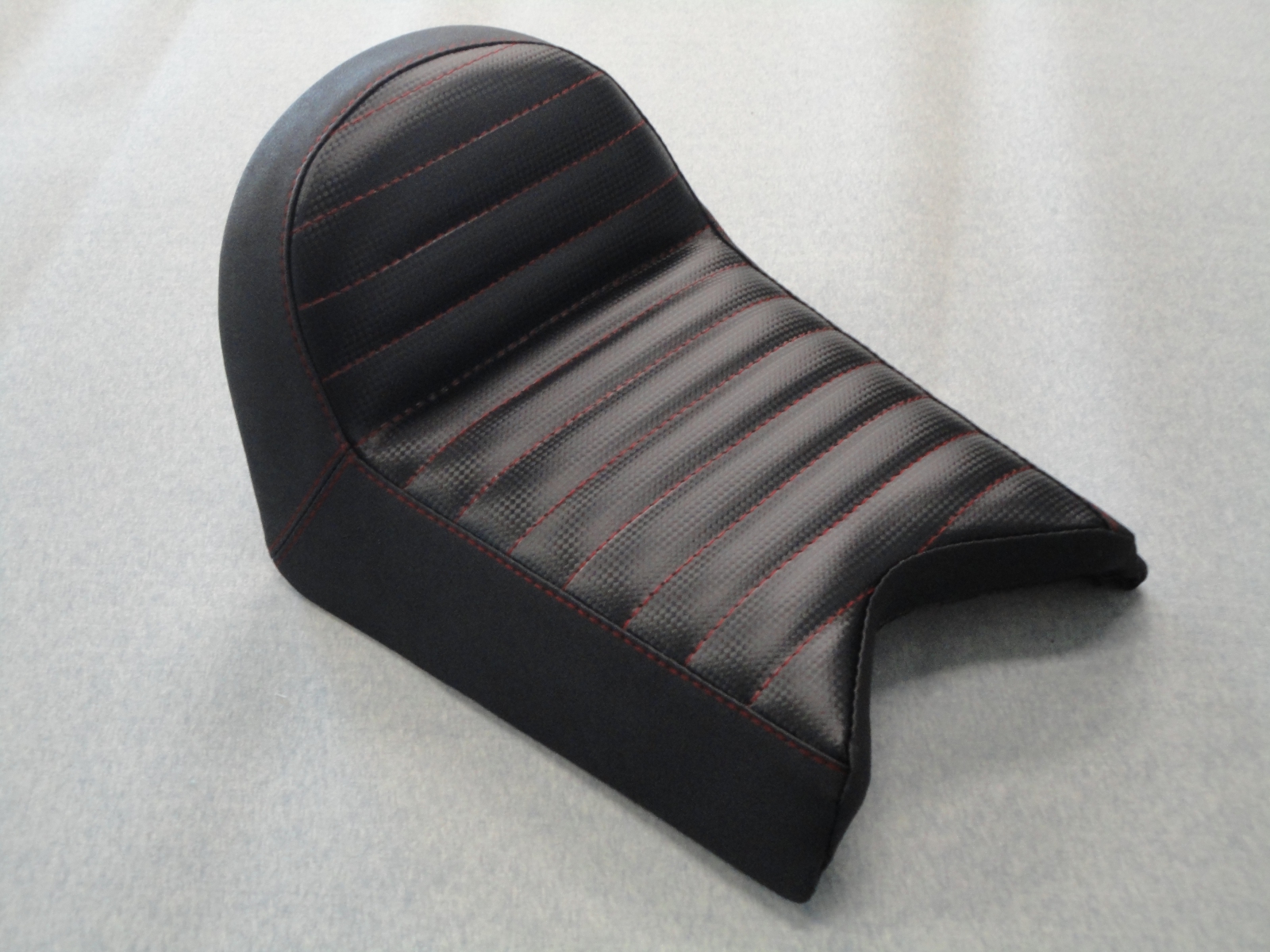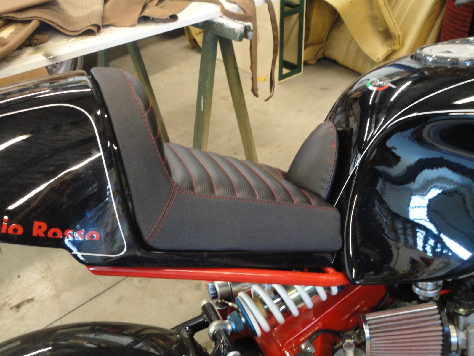 Disegno come da sella originale, eseguita leggera modifica per aumentare il confort, rifacimento rivestimento in ecopelle antiscivolo ” pallini”