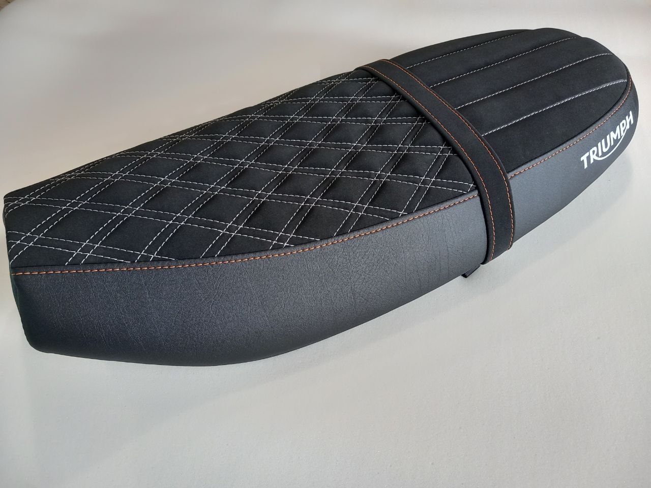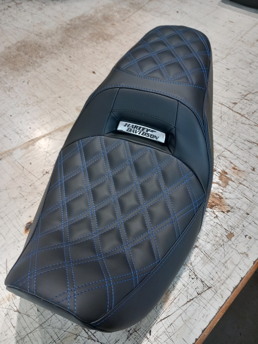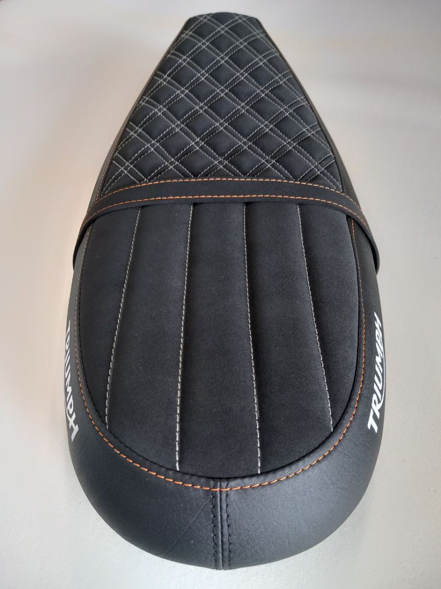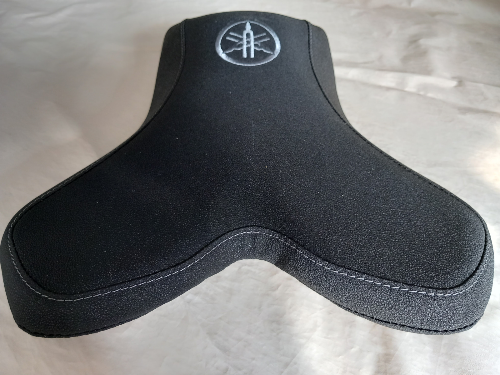 Disegno come da sella originale, eseguita leggera modifica per aumentare il confort, rifacimento rivestimento in ecopelle antiscivolo ” pallini”